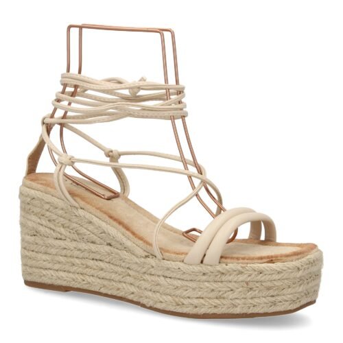 Sandalia de cuña de yute para mujer comodas y elegantes diseño moderno con tiras cruzadas y cierre de cordones al tobillo.
