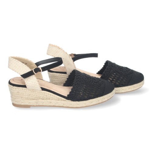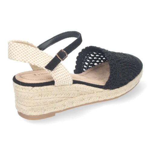 Sandalia de Cuña de Yute para Mujer Estilo Valenciana con Pala Bordada Cierre de Hebilla ideal para Primavera-Verano.