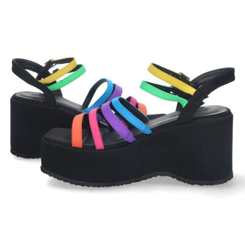Sandalia de Plataforma para Mujer Comoda con Pala de Tiras Multicolor y Doble Cierre de Hebilla