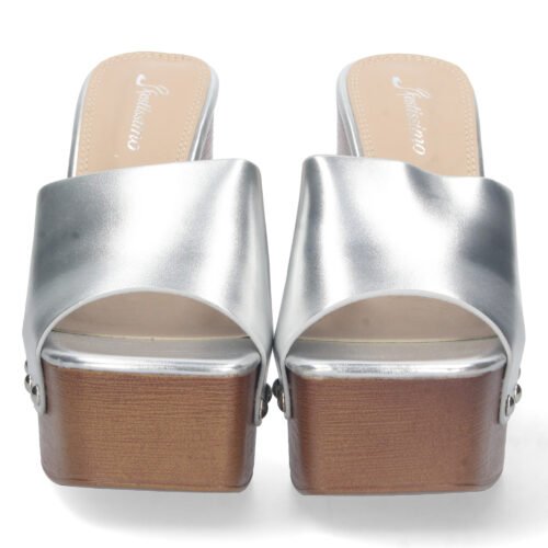 Sandalia de Tacon y Plataforma para Mujer Comoda Material de Imitacion a Madera Pala Simple con Remaches y Talon Abierto