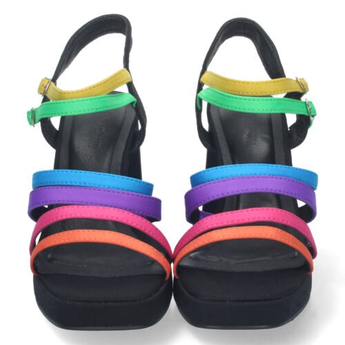 Sandalia de Tacon para Mujer Comoda con Pala de Tiras Multicolor y Doble Cierre de Hebilla