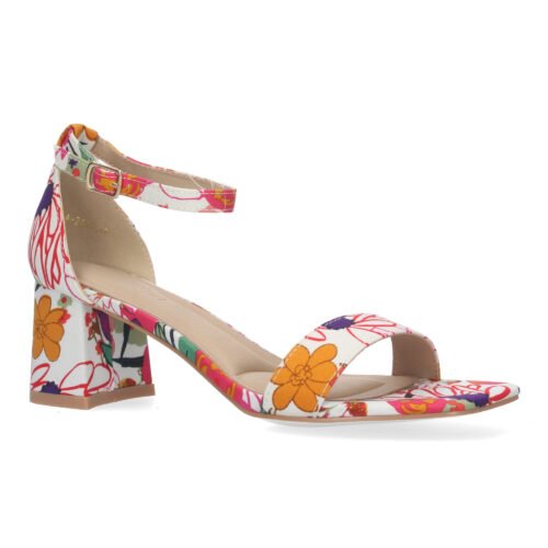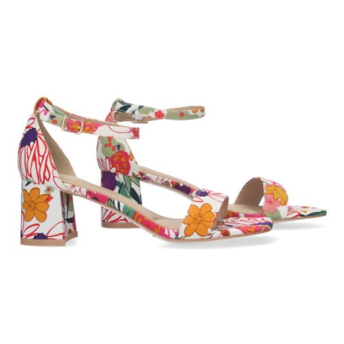Sandalia de Tacon para Mujer Comoda con Pala Fina y Cierre Ankle Strap de Hebilla Estampado multicolor.