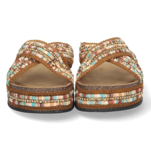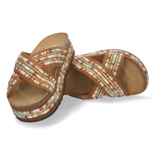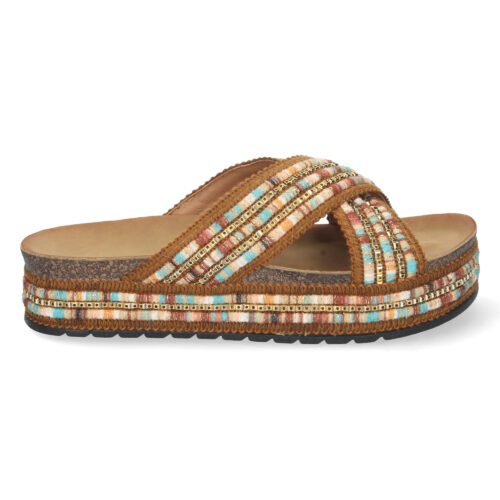 Sandalia Plana para Mujer con Planta Bio Bordado Multicolor y Palas Cruzadas Primavera Verano 2022