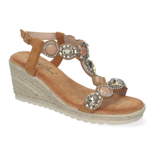 Sandalias de Cuña de Yute para Mujer Elegantes y Cómodas con Adornos de Pedrería Hebilla Ajustable Perfectas para cualquier Ocasión.