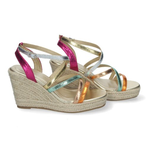 Sandalias de Cuña para Mujer con Tiras Cruzadas Elegantes y Confortables con Cierre de Hebilla Ajustable.
