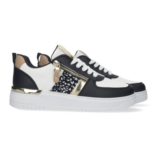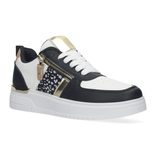 Zapatillas de mujer cómodas con detalles de animal print y dorado y adorno de cremallera dorada