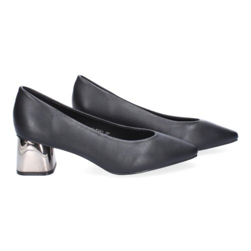 Zapatos de Salón Elegantes para Mujer Tacón Cuadrado Metálico Diseño Sofisticado con Puntera Fina.